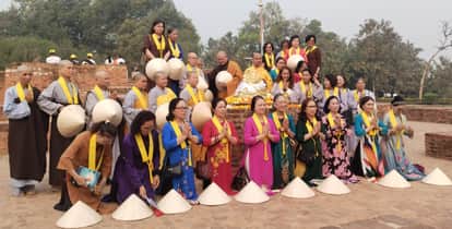 गंध कुटी में प्रार्थना करते वियतनाम के अनुयायी।