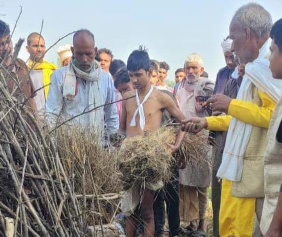 आठ वर्षीय हिमांशु ने दी मुखाग्नि, नम हुई हर किसी की आंखें
