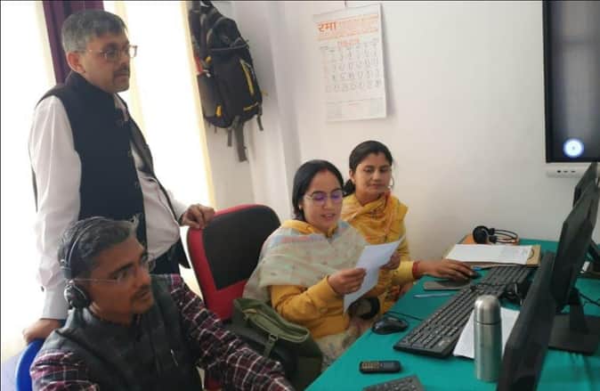 राजकीय पुस्तकालय मे बने कंट्रोल रूम का निरीक्षण करते डीएम।- स्रोत: विभाग