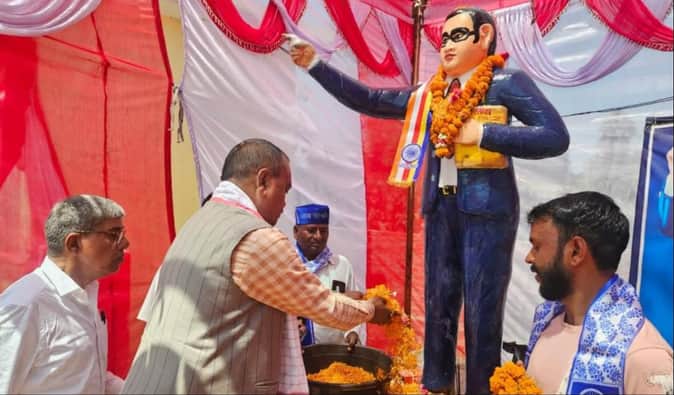 - फोटो : इकौना में बाबा साहेब की प्रतिमा पर पुष्प अर्पित करते विधायक।
