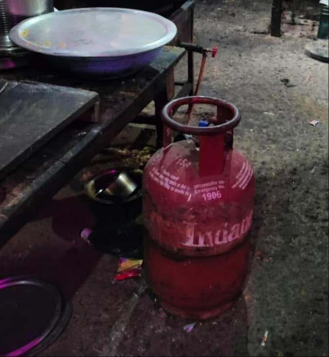 इकौना के एक होटल में प्रयोग हो रहा घरेलू गैस सिलिंडर
