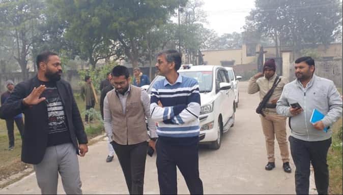 स्पोर्ट्स स्टेडियम भिनगा का निरीक्षण करते डीएम व सीडीओ। - स्रोत: विभाग