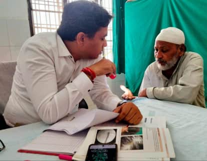 जिला चिकित्सालय में एलर्जी के मरीज का परीक्षण करते चिकित्सक।