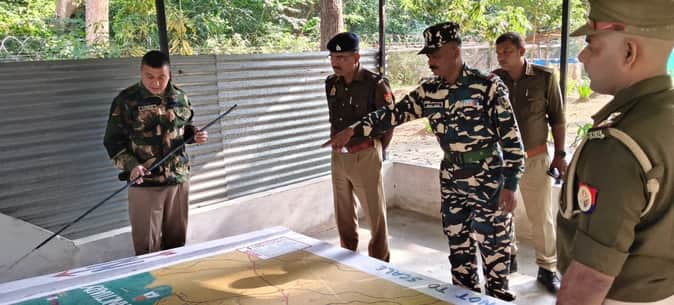 सिरसिया में एसएसबी के साथ नक्शा देखते एएसपी।