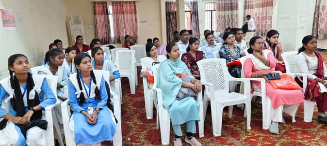 डीपीआरसी में आयोजित कार्यक्रम में मौजूद छात्राएं व शिक्षक।-
