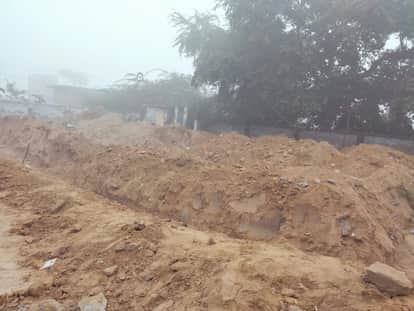 विद्यालय भवन के निर्माण के लिए खोदी गई नींव। - संवाद
