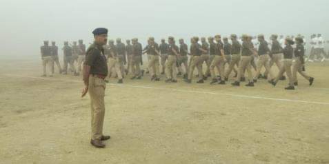 पुलिस लाइन में परेड का निरीक्षण करते एएसपी।