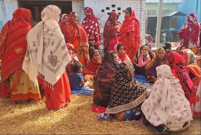 घटना के बाद मलंग गांव में रोते बिलखते परिजन।