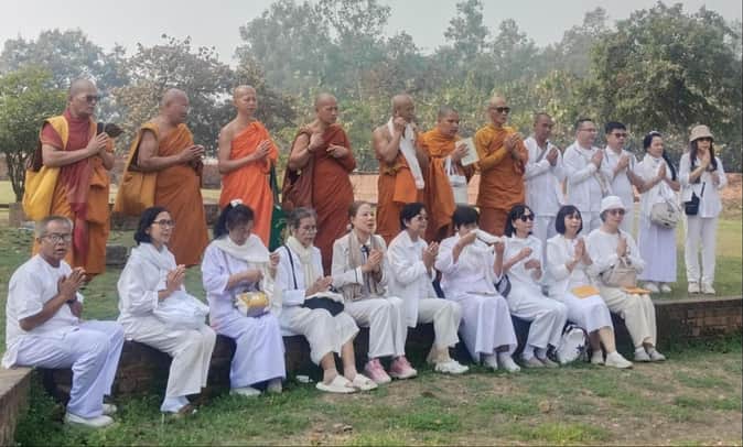 जेतवन परिसर में बृहस्पतिवार को प्रार्थना करते थाईलैंड के अनुयायी। - संवाद