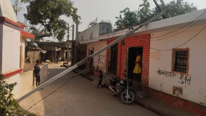 ककंधु गांव में 10 दिन पूर्व टूटा विद्युत पोल।- संवाद
