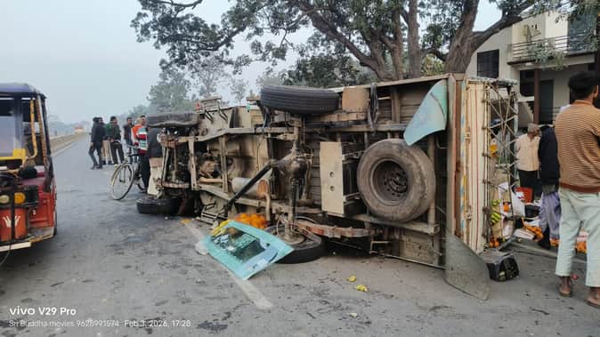 Shravasti News: डिवाइडर से टकराकर पिकअप पलटी
