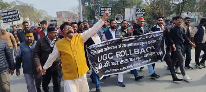 यूजीसी के विरोध में सवर्ण समाज के लोग ईदगाह तिराहे पर इकट्ठा हुए और हाथों में तख्तियों लेकर नारेबाजी करते हुए कलेक्ट्रेट पहुंचे। कलेक्ट्रेट में प्रदर्शन करने के बाद डीएम को संबोधित मांग पत्र सौंपा। प्रदर्शन में शामिल अधिवक्ताओं ने बताया कि यूजीसी के नए नियम में प्राथमिक शिकायत को ही साक्ष्य मानने जैसा बनाया गया है, जो विधि के विरुद्ध है। नियम में फर्जी शिकायत पर स्पष्ट दंडात्मक कार्रवाई का भी प्रावधान नहीं है। यूजीसी के नियम वापस होने तक हम सभी की लड़ाई जारी रहेगी।