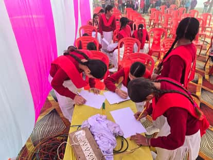चित्रकला प्रतियोगिता में प्रतिभाग करतीं केजीबीवी की छात्राएं। - स्रोत: विभाग