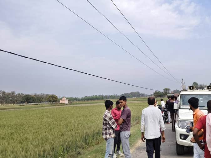 रविवार को जहा घटना हुई थी, सड़क से कुछ दूरी पर लटकता हुआ तार। संवाद