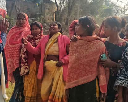 रोते बिलखती चंद्रबली की पत्नी संगीता। संवाद