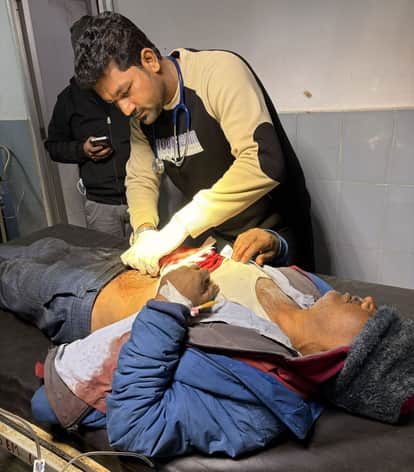 मेडिकल कॉलेज के इमरजेंसी वार्ड में खुद को चाकू मारने वाले घायल का इलाज करते डॉ. सब्बीर। संवाद