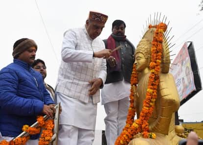 जनपद स्थापना दिवस के अवसर पर बर्डपुर स्थित तिराहे पर भगवान बुद्ध की प्रतिमा पर पुष्प अर्पित करत