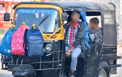 सबसे बुरा हाल ई-रिक्शा और टेंपो और मैजिक का रहा। ई-रिक्शा में बमुश्किल छह बच्चों को बैठाया जा सकता है, लेकिन 8 से 12 बच्चे बैठे हुए नजर आए। इसके साथ ही बच्चों के हाथ में बैग लटका हुआ दिखा। वहीं अशोक मार्ग से गुजर रही टेंपो में पैर बाहर किए हुए किसी तरह से बच्चे बैठे मिले।