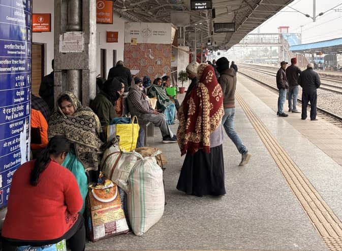 रेलवे स्टेशन सिद्धार्थ नगर पर ट्रेन का इंतजार करते यात्री