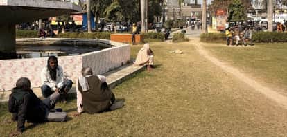 कलेक्ट्रेट परिसर में स्थित गार्डन में धूप का आनंद लेते लोग