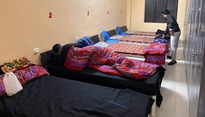 मेडिकल कॉलेज के परिसर में स्थित रैन बसेरा में मौजूद लोग। संवाद