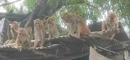 बढ़नी कस्बे में झुंड में बैठे बंदर। संवाद