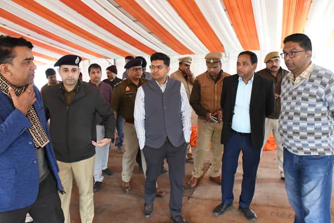 बीएसए ग्राउंड पर आयोजित सिद्धार्थनगर महोत्सव के तैयारी का जायजा लेते डीएम शिवशरणप्पा जीएन, एसप