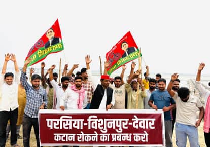Siddharthnagar News: मोहन सेतु के पास हो रही कटान के विरोध में सपाइयों ने किया प्रदर्शन