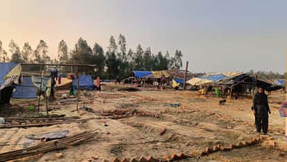 आवंटन के बाद तिरपाल डालकर रह रहे विस्थापित परिवार।