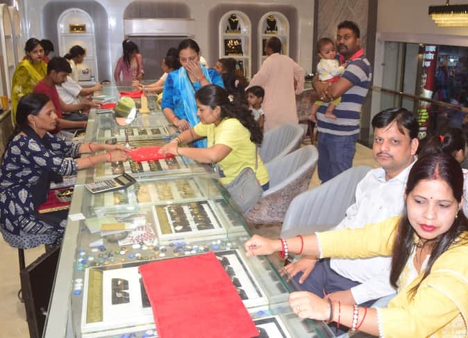 लालबाग बाजार में आभूषण खरीदते ग्राहक। संवाद