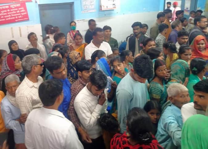 जिला अस्पताल में उपचार के लिए कतार में खड़े मरीज। - संवाद