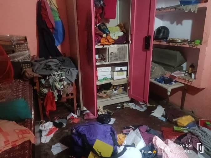 लूटपाट के बाद बिखरा पड़ा सामान।