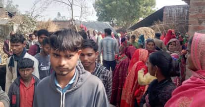 - फोटो : मृतक कैदी के घर के बाहर मौजूद परिजन व ग्रामीण।