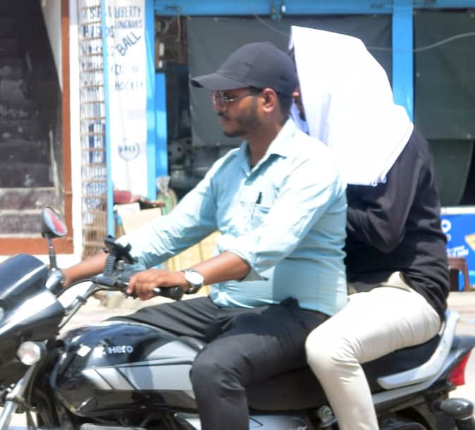 तेज धूप से बचने के लिए बुधवार को कैप और गमछा का सहारा लेकर जाते लोग। - संवाद