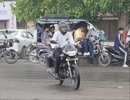 मंगलवार दोपहर बारिश होने पर शहर में भीगते हुए जाते लोग। संवाद