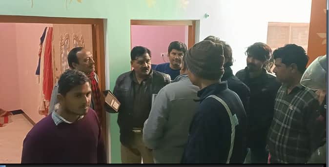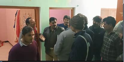 जांच करते पुलिस अधिकारी।