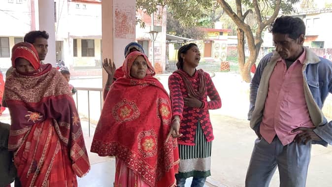इमलिया सुल्तानपुर सीएचसी पर शोकाकुल परिवार के सदस्य।