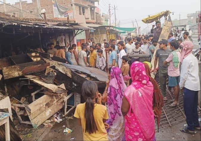 Sonebhadra News: शॉर्ट सर्किट से दोना पत्तल की दुकान में लगी आग