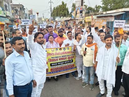 रॉबर्ट्सगंज में मशाल जुलूस निकालते यूटा के पदाधिकारी। संवाद