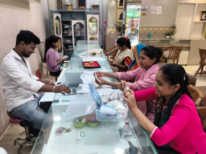 अक्षय तृतीया पर आभूषण की खरीदारी करते लोग। -