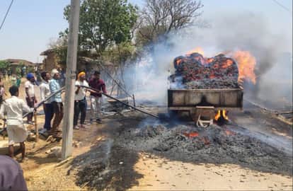 Sonebhadra News: ट्रैक्टर-ट्रॉली में लदे थे गेहूं के बोझ, शॉर्ट सर्किट से जले