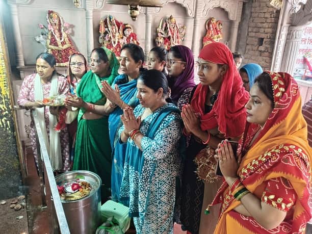रॉबर्ट्सगंज शीतला माता मंदिर में शीतला अष्टमी पर पूजन अर्चन करती महिलाएं। संवाद