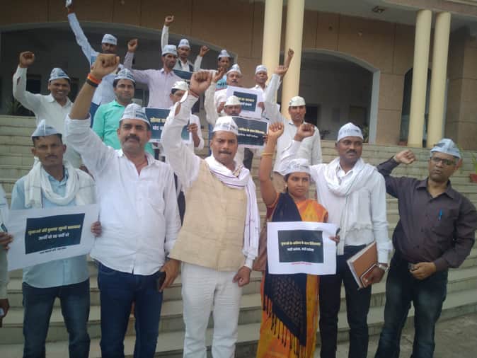 लेक्ट्रेट में प्रदर्शन करते आम आदमी पार्टी के कार्यकर्ता।