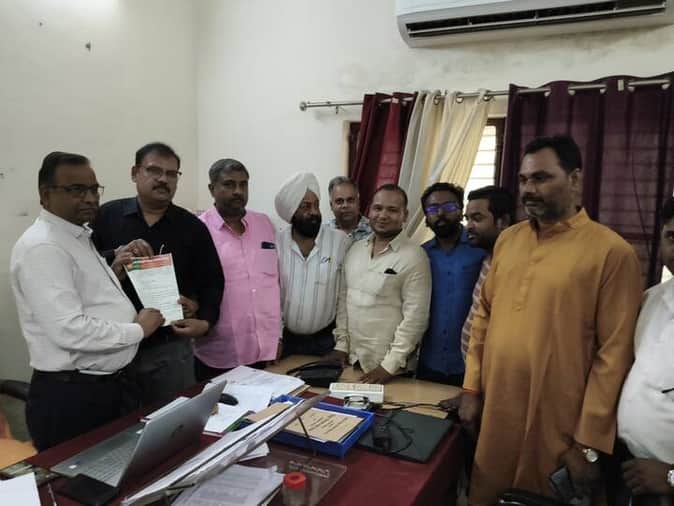रॉबर्ट्सगंज बिजली विभाग के एक्सईएन को ज्ञापन सौपते उद्योग व्यापार संगठन के पदाधिकारी। संवाद