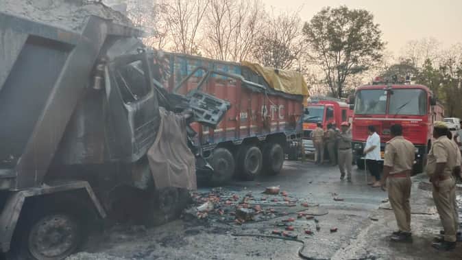 Sonebhadra News: विपरीत दिशा से आ रहे हाईवा की ट्रक से टक्कर के बाद लगी आग, चालक-खलासी जिंदा जले