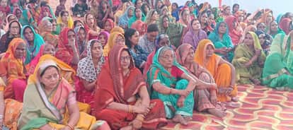 कंदवा के घोसवा में शिव महापुराण कथा सुनते श्रद्धालु। संवाद