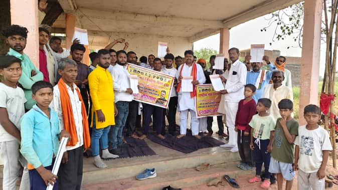 कोन में हस्ताक्षर अभियान चलाते अभियान राष्ट्रीय नव निर्माण के राष्ट्रीय अध्यक्ष आनंद पटेल दयाल