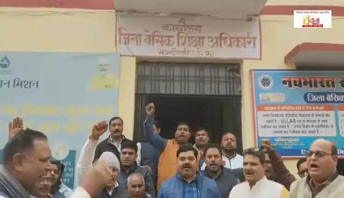 Sonebhadra News: शिक्षकों का बीएसए कार्यालय घेराव, मांगों को लेकर गेट पर किया प्रदर्शन