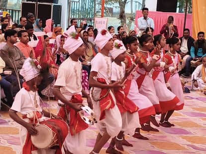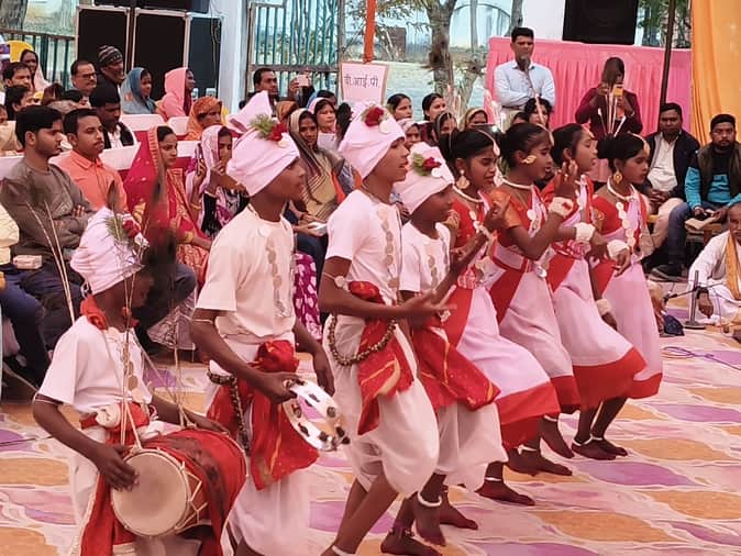 कलेक्ट्रेट परिसर में उत्तर प्रदेश दिवस पर करमा नृत्य प्रस्तुत करते प्रतिभागी। संवाद