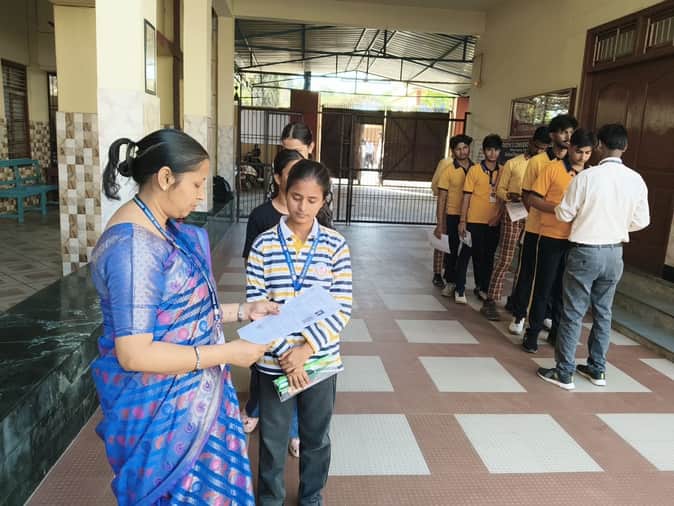 रॉबर्ट्सगंज संत जोसेफ कांवेंट स्कूल में सीबीएसई बोर्ड परीक्षा के पूर्व जांच करते शिक्षक। संवाद